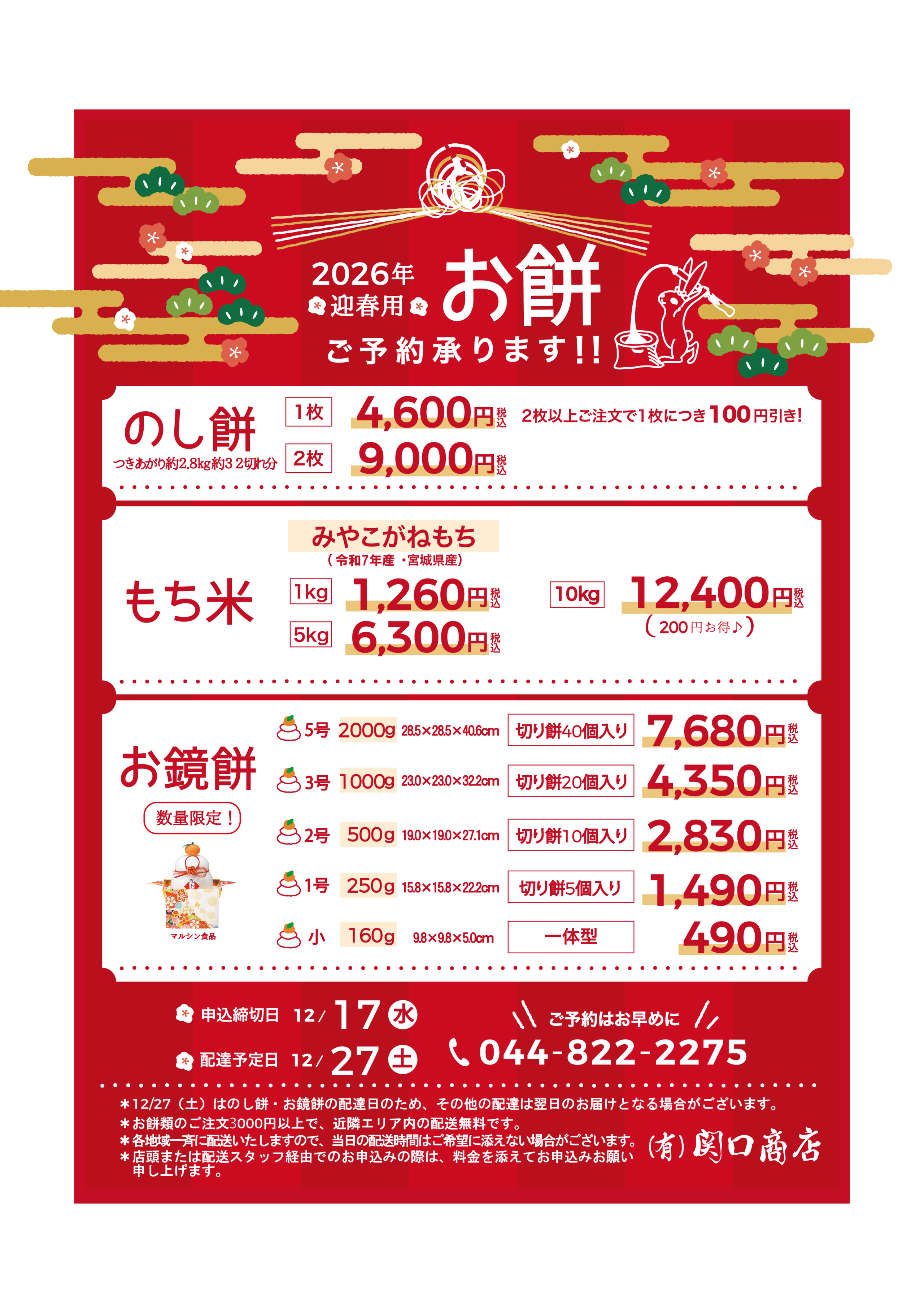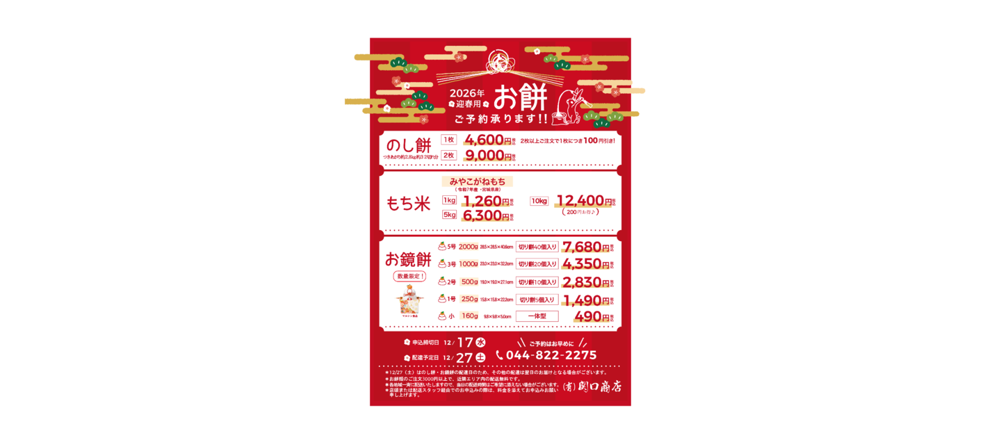 2026年迎春用のお餅の注文受付が始まりました!!