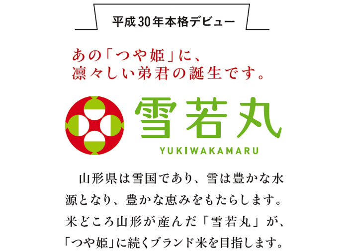 おんぶばったの会直 特別栽培米 新米入荷 --------------------------- 山形県から新品種が登場しました!しっかりした粒感と稲姿などが男性的であること、際立つ白さとツヤのある外観が雪のように白いことから「雪若丸」とネーミングされました。ひとつぶひとつぶの食感はまさに新食感。あっさりと上品な味わいはどんなおかずも引き立ててくれます。